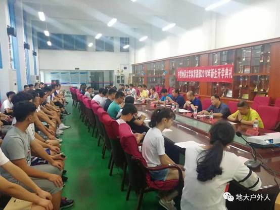 国家攀岩队队员、18届亚运会攀岩速度接力赛铜牌获得者2016级硕士研究生梁荣琪作为在校生代表,在典礼上分享自己的成长经历,希望新同学为自己的理想勤奋拼搏。新生代表杨一鸣同学发言表示“一定以优秀的学长学姐为榜样,做新时代的地大户外人!”