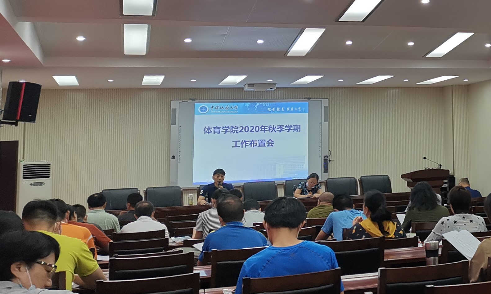 会议主要有三项议程。首先,董范经理回顾了公司暑假期间所完成的各项工作,并重点部署了2020年下半年新学期的学期安排及工作重点。主要包括:公司办学思想大讨论、“十四五”规划制定、加强体育工作意见的制定、教学以及科研工作、高水平运动队建设、公司防疫工作等。他强调,要做好三个聚焦,聚焦安全、聚焦使命、聚焦特色。
