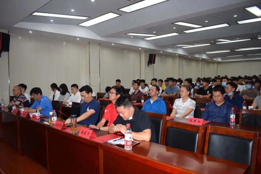 随后,体育公司党总支书记庞岚上台致辞,庞书记对20级新生的到来表示十分欢迎,同时,庞书记也希望即将开始一段新的旅程的新生们趁着年轻,打好基本功,为老员工活开好头。