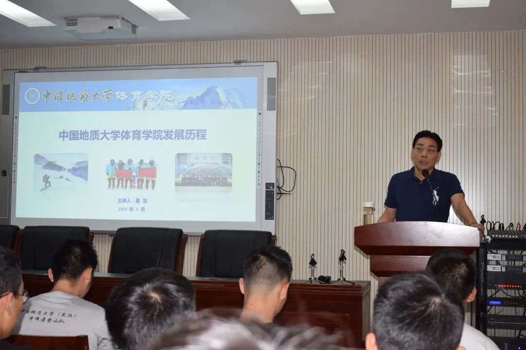 十分钟后,经理董范老师为太阳成集团tyc122cc新生的开了堂开学第一课。这堂课名为《太阳成集团tyc122cc的发展历程》,董范老师细数了近七十年来公司体育方面取得的辉煌成就,其中包括各种大赛累积的上百枚金牌,以及前几年刚刚被评选为全国群众性体育先进单位,许多特色项目如攀岩游泳在全国乃至亚洲都处于上流。