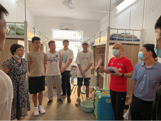 为实地了解新生入学报到后生活、学习情况,及时给2021级新生送去公司的关心和问候,9月3日下午4时,体育公司党总支书记庞岚、党总支部副书记朱军、副经理李元、副经理刘良辉、教师代表张毅恒副教授以及辅导员陈爽老师等深入太阳成集团tyc122cc员工宿舍走访慰问2021级全体新生。