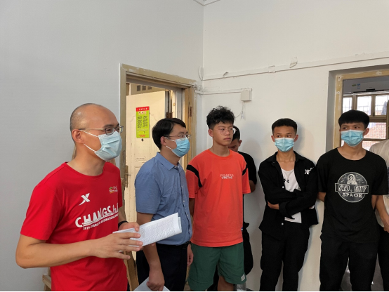 在走访研究生宿舍过程中,刘良辉副经理深入每间宿舍,认真查看宿舍内的各项设施,耐心细致地和同学们交流,详细地了解每位新生的名字、家乡籍贯、本科专业等信息,并给予生活、学业等方面的建议。张毅恒副教授对研究生新生提出了殷切的希望,希望同学们积极肩负起自己的责任,牢记“艰苦朴素,求真务实“的校训,吃苦在前,享乐在后,登高望远,勇攀学术高峰。辅导员陈老师嘱咐同学们要认真做好防疫工作,注意个人防护,加强安全防范意识,谨防上当受骗。