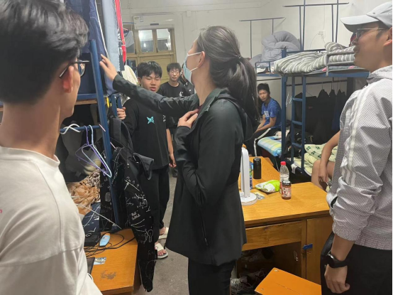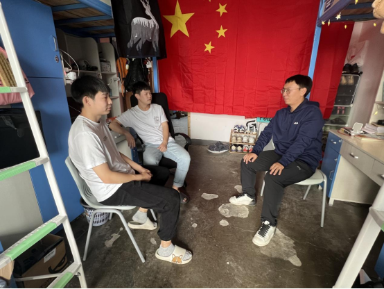 公司党委副书记朱军老师走访2020级男生宿舍