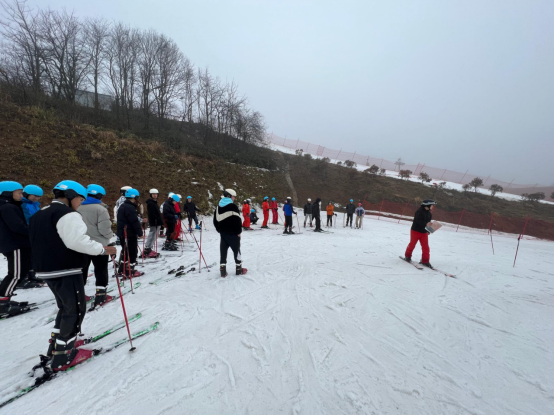 在滑雪训练中,从安全摔倒与站立、犁式直滑降与制动,到犁式转弯、半犁式以及进阶平行式滑行,同学们不惧艰难、不怕摔倒,逐渐熟练掌握滑雪技巧,甚至可以在老师的带领下挑战坡度更陡的中高级赛道。