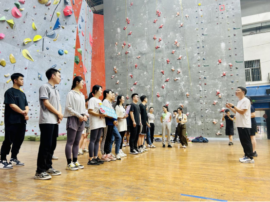 辅导员老师们还集中观看了公司攀岩运动员在速度攀岩、难度攀岩和攀石三个项目的表演展示,并在助教团队的带领下进行速度攀岩与难度攀岩尝试,通过亲身体验的方式感受攀岩运动的魅力与乐趣。