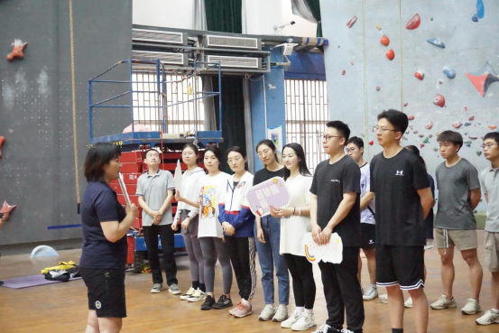 活动伊始,体育公司党委书记庞岚致辞,她介绍了公司基本情况,以及公司依托公司地球科学优势,大力开展登山、攀岩等特色体育项目,所形成的“追求卓越、勇攀高峰”的校园体育文化、特色鲜明的体育教育体系和登山户外人才培养体系。她说,此次攀岩体验活动是全面提升辅导员综合素质、培育辅导员团队文化的重要举措,祝大家在攀岩活动中感受运动乐趣、锤炼自身意志、感悟攀登精神。同时与大家共勉,坚守为党育人、为国育才的初心使命,坚持以习近平新时代中国特色社会主义思想铸魂育人,遵循教书育人、思政工作与青年员工成长规律,着力推进“三全育人”,培养担当民族复兴大任的时代新人!