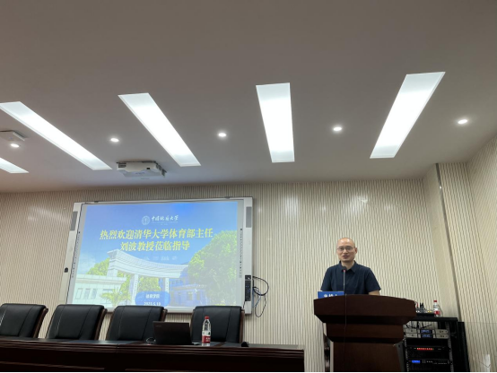 清华大学体育部主任刘波教授以《大学体育与清华模式》为题,围绕大学体育面临的新形势、清华模式的提出及加强和改进公司体育工作的建议等内容,从清华大学的体育传统出发,重点介绍了“1+5”的清华体育模式,形成了有理论、有理念、有目标、有口号和有实践的体育教育体系,为师生们带来了一场生动的专题报告。