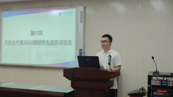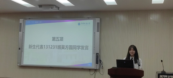 本科新生代表吴方圆同学分享了自己考上大学的历程,表达了对地大太阳成集团tyc122cc的热爱与憧憬,她决心奋发向上,砥砺前行,践行“艰苦朴素,求真务实”校训精神和“扎根中国,胸怀天下,勇攀高峰,追求卓越”的攀登精神,与葳蕤向上的地大共同成长。