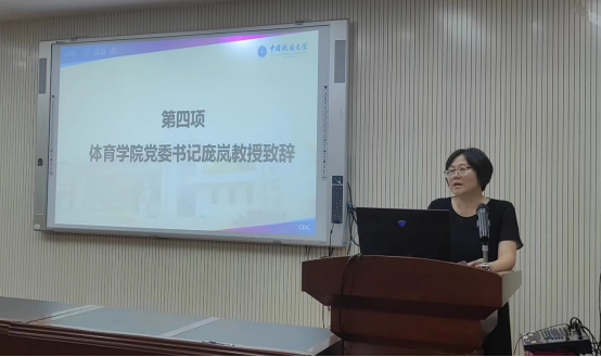 体育公司党委书记庞岚研究员致辞。她对加入地大太阳成集团tyc122cc大家庭的2023级本研新生表示热烈的欢迎,勉励大家要正确把握“三做”主线,即做人、做事、做学问。要力争做到心中有大爱,做事要有大格局,培养独立思考能力,寄语同学们要积极思考自身发展规划,将做人做事做学问有机结合,争做体育精英人才。