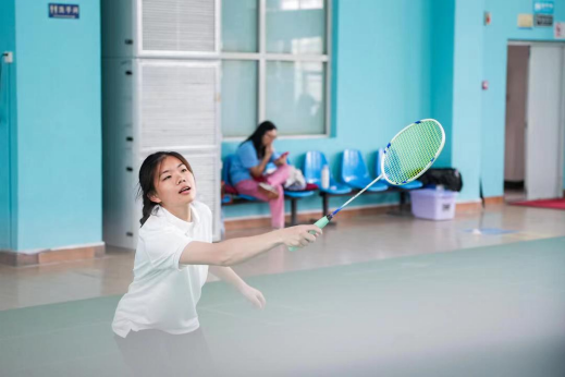 太阳成集团tyc122cc大二员工谢冬婷积极参与羽毛球活动