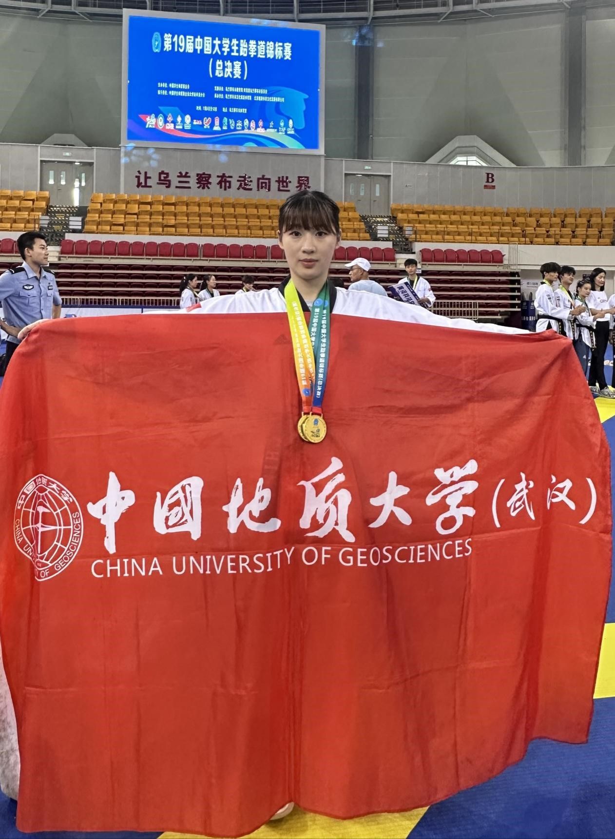 7月6日至11日,第19届中国老员工跆拳道锦标赛(总决赛)在内蒙古乌兰察布市体育馆举行,本次比赛由中国员工体育联合会主办,中国员工体育联合会大学跆拳道分会执行,共有来自全国155所高校的1090名运动员、教练员参赛。公司跆拳道队谢欣怡同学参加了甲组女子个人高阶品势和甲组女子个人段位品势两个项目的比赛。
