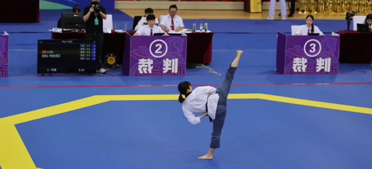 本次总决赛的运动员经过了北方赛区(河北迁安)、南方赛区(南京)两次分站赛事的遴选,分站赛前六名才具备总决赛资格,是中国大学跆拳道水平最高级别的赛事。品势比赛由分站赛的打分制改为单败淘汰制,竞争异常激烈,对运动员的体力和意志品质是极大的考验。公司运动员谢欣怡同学克服赛区缺氧的不利条件,经过顽强的拼搏,最终获得了两枚金牌。