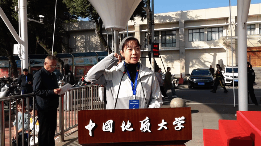 上午八点,校运会开幕式在激昂的运动员进行曲中拉开帷幕。国旗队、校旗队率先入场,他们步伐整齐、精神饱满,展现出地大学子的飒爽风姿。