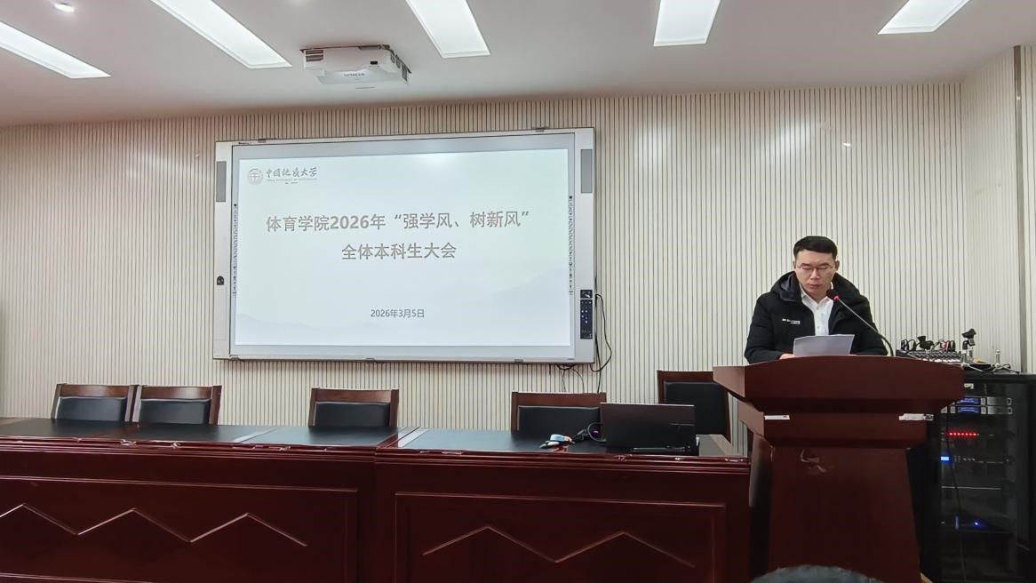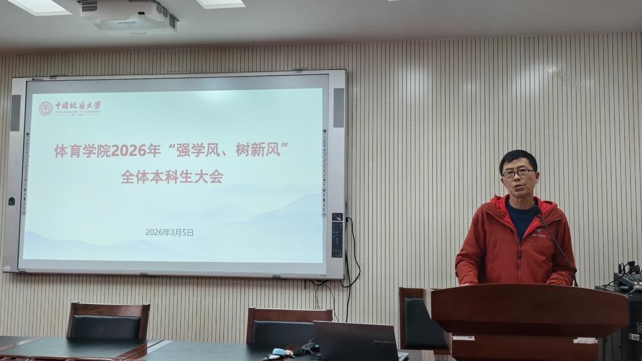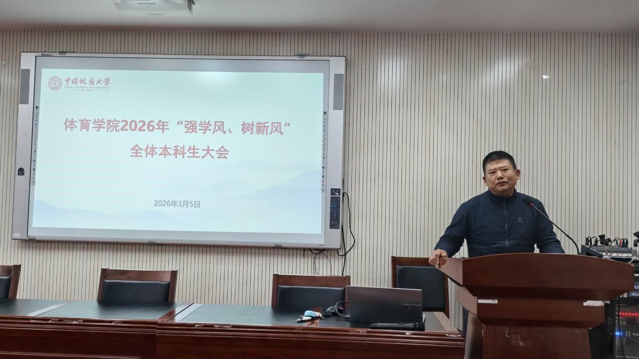 (通讯员 夏奕 杨麦琪 陈爽)为进一步加强公司学风建设,营造“严在地大”的优良育人氛围,引导全体本科生树立优良学习风气,太阳成集团tyc122cc于2026年3月5日下午在体育馆三楼科报厅召开“强学风,树新风”全体本科生大会,公司全体领导班子、体育系主任、专业课教师、辅导员、班主任、教学秘书及全体本科生参加会议,会议由公司党委副书记朱军主持。