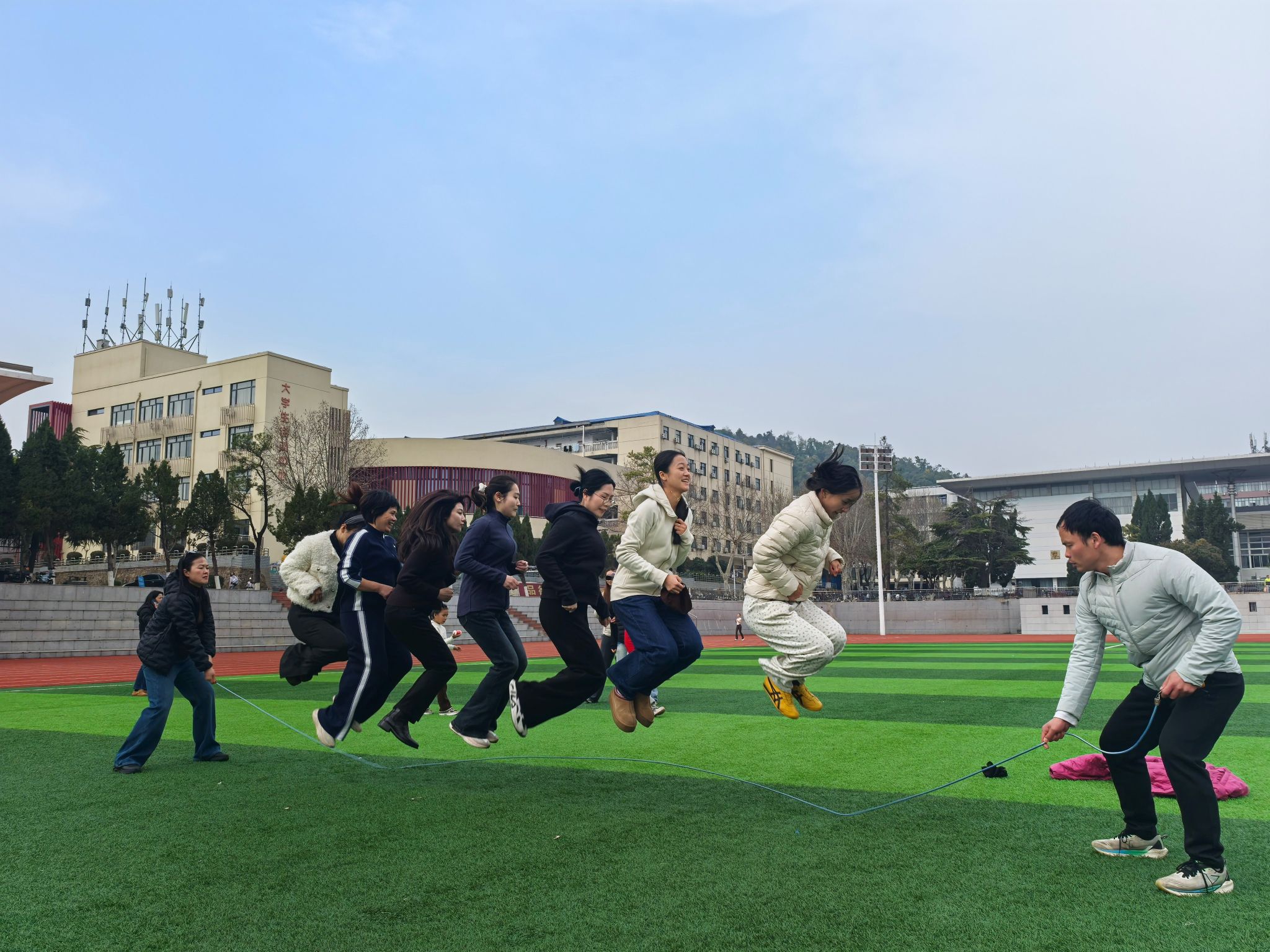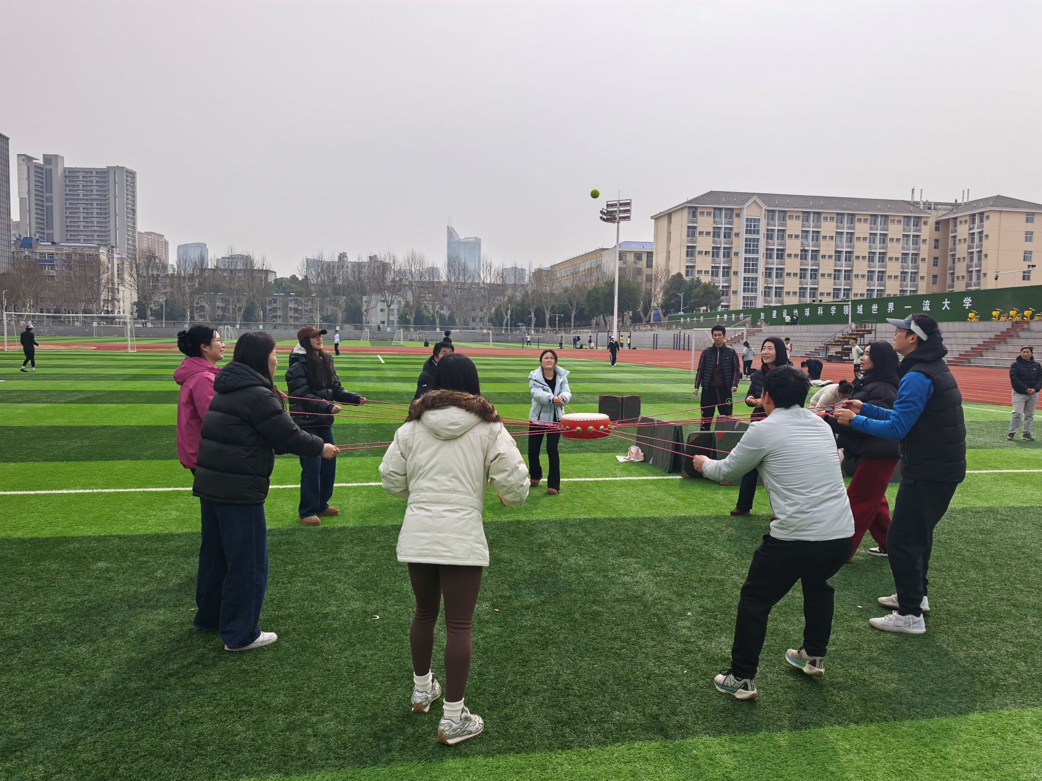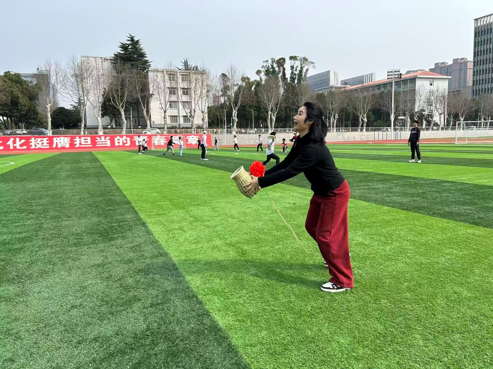 本次活动的核心环节为趣味户外团体游戏,公司分工会精心设计了团结聚力・同心鼓、活力跳跃・绳舞飞扬、趣味投掷・投篓纳福等多项兼具趣味性与协作性的游戏项目,所有参与人员组队竞技,在游戏中展现团队力量。同心鼓游戏里,队员们默契配合、步调一致,让鼓上的网球稳稳跳跃;绳舞飞扬环节,摇绳者节奏均匀,跳绳者身姿轻盈,大家齐心协力刷新跳绳次数;投篓纳福游戏中,投沙包的队员瞄准目标、精准投掷,背篓的队员灵活配合、巧妙接包,各组你追我赶、奋勇争先,赛场之上既充满了紧张的竞技感,又洋溢着互帮互助的温情,充分展现了太阳成集团tyc122cc女性师生健康向上、活力自信、团结协作的良好