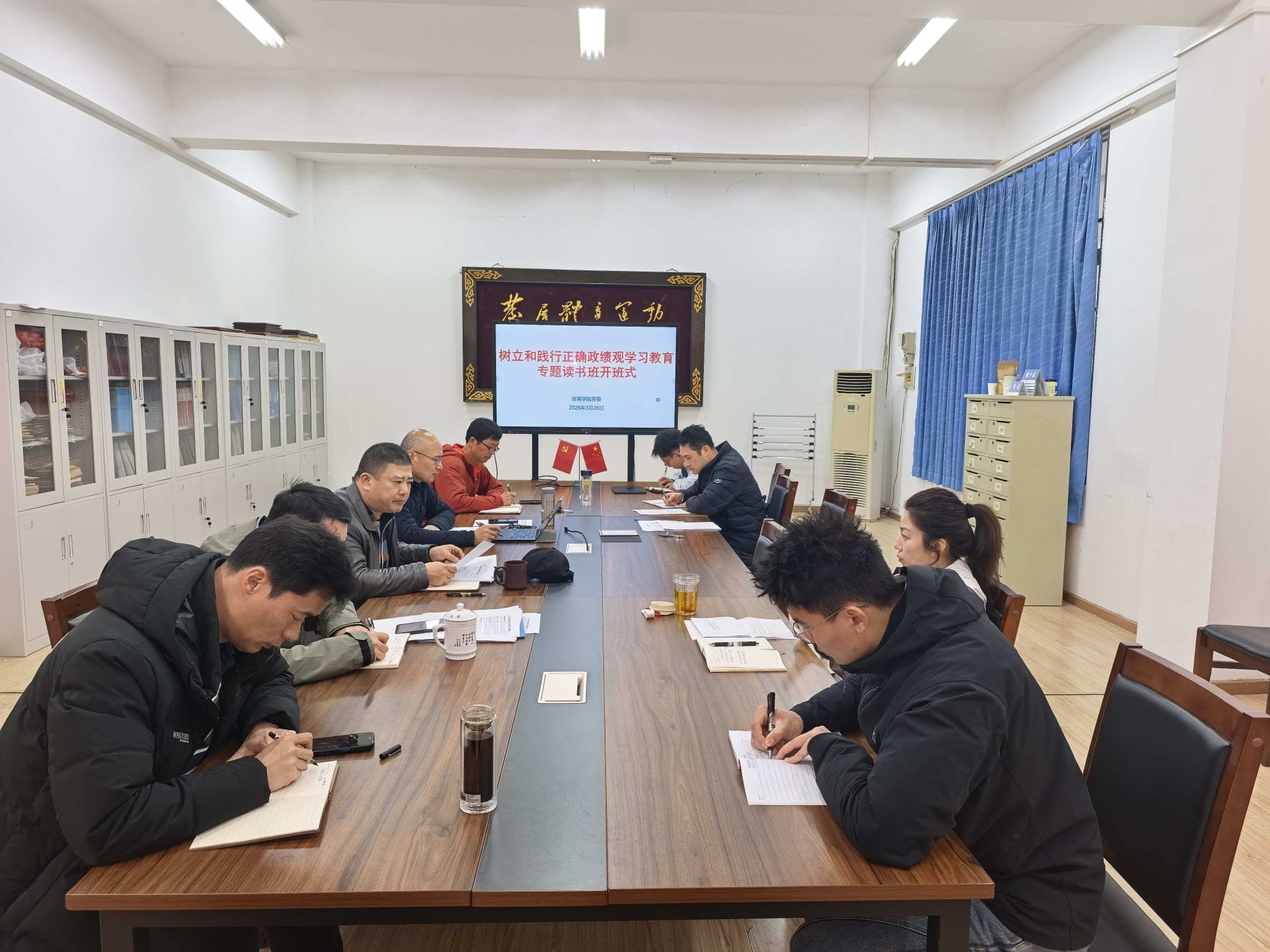(通讯员:江伟贤)为深入学习领会习近平总书记关于树立和践行正确政绩观的重要论述,推动公司党员领导干部政治能力和理论素养持续提升,体育公司党委理论学习中心组于2026年3月26日下午在体育馆党员之家举行“树立和践行正确政绩观学习教育专题读书班”开班仪式。开班仪式由公司党委书记何建新主持,公司全体党委委员、师生党支部书记参加学习。