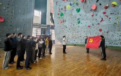特色实践环节,全体参会党员齐聚在122cc太阳成集团官网(武汉)攀岩馆内重温了《中国共产党入党誓词》。