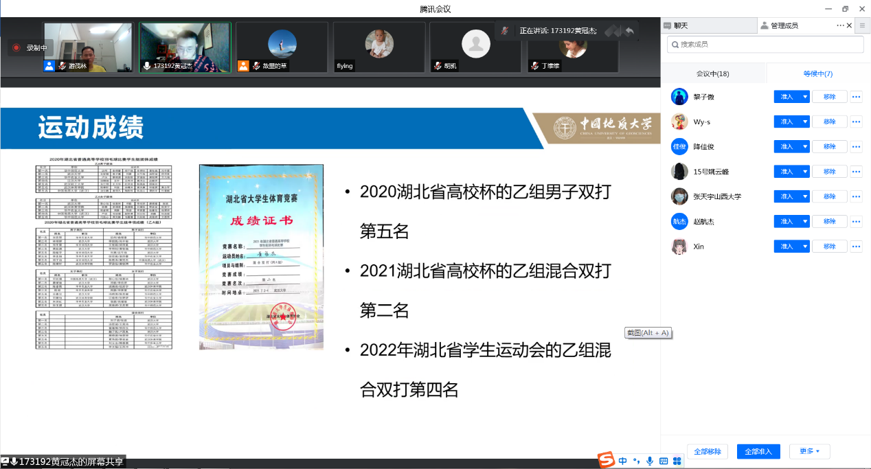 随后,参加本次活动的员工按照抽签顺序依次进入腾讯会议室,与导师们进行交流,主要包括中英文自我介绍、本科期间学习情况、研究生阶段的学习计划,以及师生互动等环节。