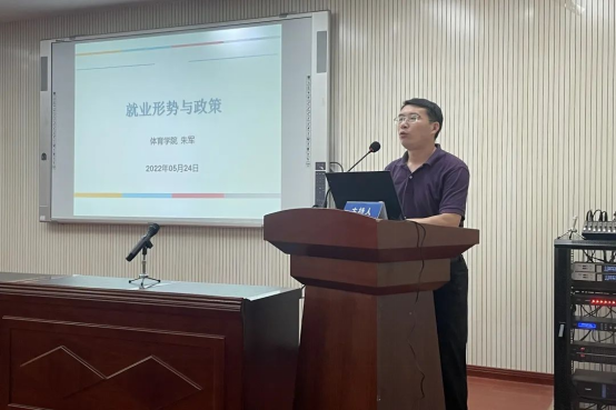 会议第一单元,体育公司党委副书记朱军从就业形势、就业政策、就业管理、求职渠道四个方面进行全面分析与讲解,帮助毕业生认清疫情之下就业形势的严峻性,鼓励同学们进行积极准备,勇于尝试,坚定就业信心。