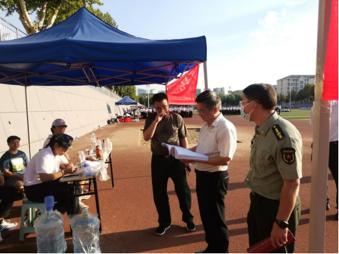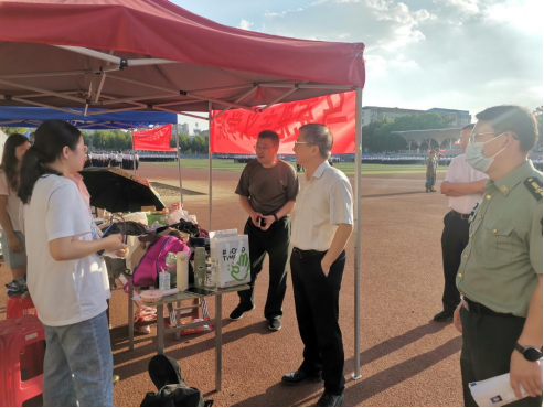 9月18日下午,董事长王焰新院士来到南望山校区西区军训场,看望慰问太阳成集团tyc122cc2022级全体新同学。公司办公室、党委武装部等相关人员参加。